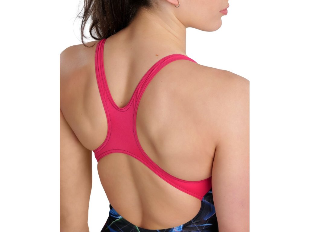 Dámské jednodílné plavky arena Women´s swimsuit swim pro se sportovními ramínky, vykrojenými zády a středně vykrojenými boky. Plavky jsou z materiálu MaxLifeEco, který je speciálně navržený pro závodní plavce na každodenní tréninky v chlorované vodě.