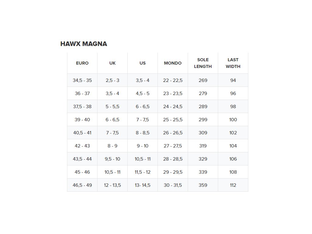 Atomic Hawx Magna 75 W je základní dámská univerzální lyžařská bota z řady Hawx Magna se šířkou 102 mm. Bota s měkkou flexí je pohodlná a přívětivá, takže vám zajistí celodenní pohodlí, ať už se právě spouštíte ze svahu, nebo čekáte ve frontě na lanovku. Univerzální bota Atomic Magna 75 W má stejnou konstrukci Prolite jako Hawx Ultra W a Prime W, díky které je lehká a zároveň zesílená v klíčových zónách, což umožňuje mimořádně razantní jízdu. Jednoduchá, cenově dostupná a přístupná bota, která díky své geometrii, materiálům a technologii Legendary Hawx Feel vyhovuje rekreačním potřebám i rozpočtu. Pro maximální přizpůsobení se tato bota dodává s odnímatelným spoilerem komínu, který lze snadno odstranit, a tím zvětšit prostor uvnitř komínu (jako kdybyste měli o jedno číslo větší botu).