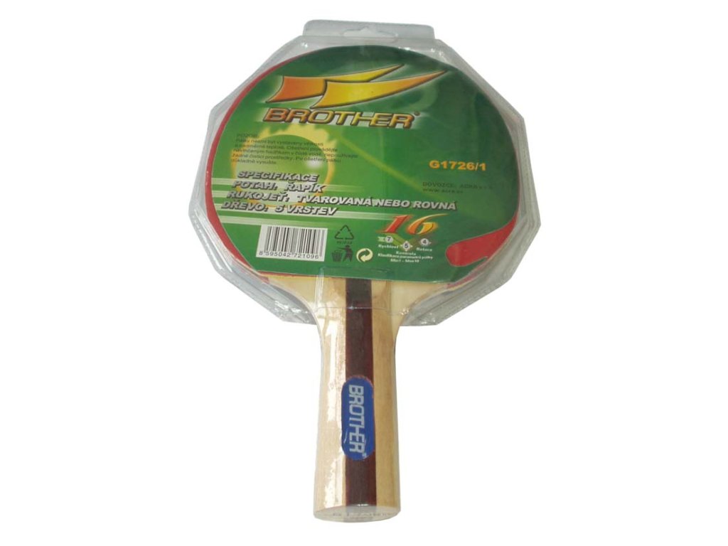Pálka na stolní tenis Brother - 1-star s řapíkovým potahem zabalená blistru. Pálka vhodná pro úplné začátečníky nebo pro milovníky klasického stolního tenisu bez vlivu kvalitních potahů na hru.