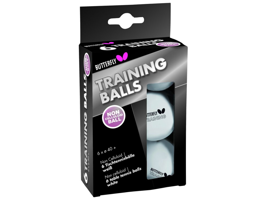 Míčky na stolní tenis Butterfly Training o velikosti 40 mm. Tréninková kvalita, míčky jsou v bílé barvě vyrobené z plastu. Balení: 6 ks v krabičce.