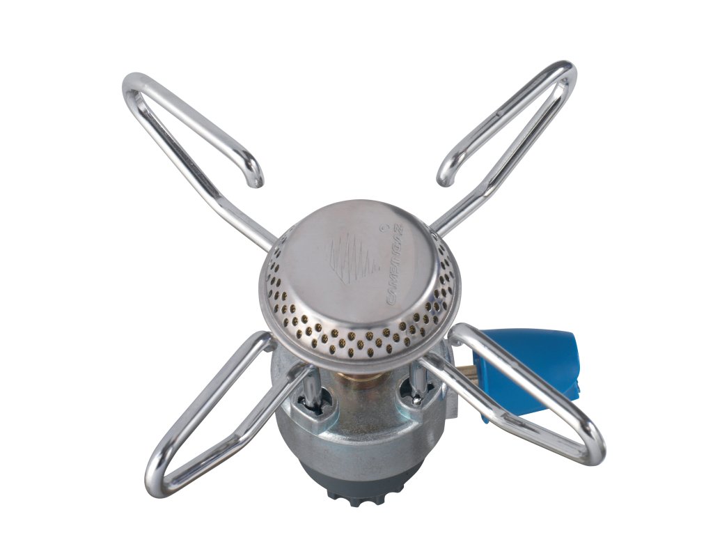 Turistický kartušový vařič s připojením Easy Clic® Plus. Sklopné raménka pro snadný transport. Ergonomický knoflík pro snadnou manipulaci.