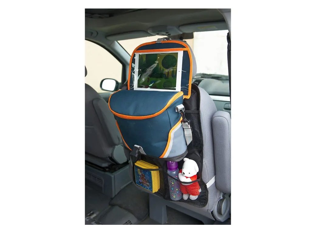 Víceúčelová chladící taška, jejíž část funguje jako organizér na autosedačku, část jako chladící taška na potraviny a vrchní část jako držák s průhlednou slídou na laptop. Vnitřní část je ošetřena antimikrobiální úpravou, která zamezuje růstu bakterií, plísní a zápachu. Díky tomuto pomocníkovi uchováte svoje potraviny a nápoje v chladu až po dobu 6 hodin.