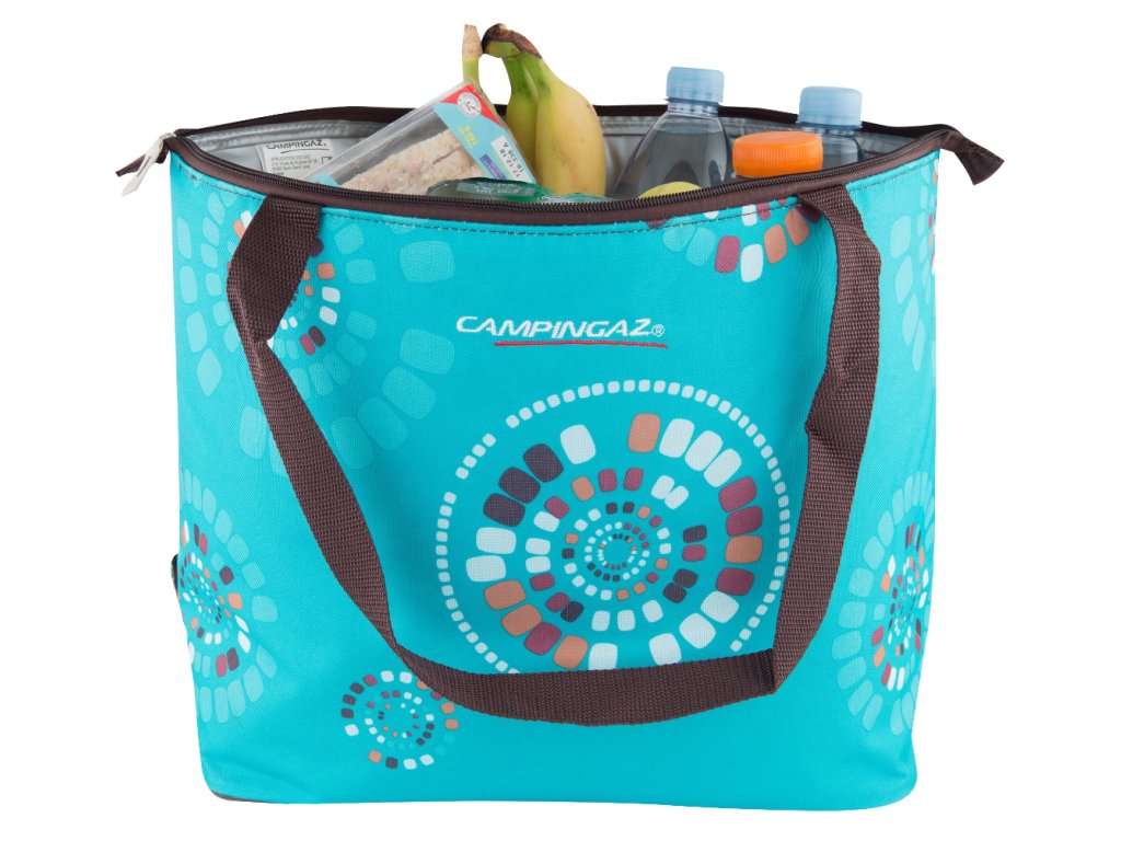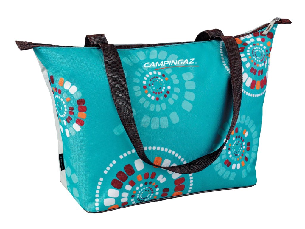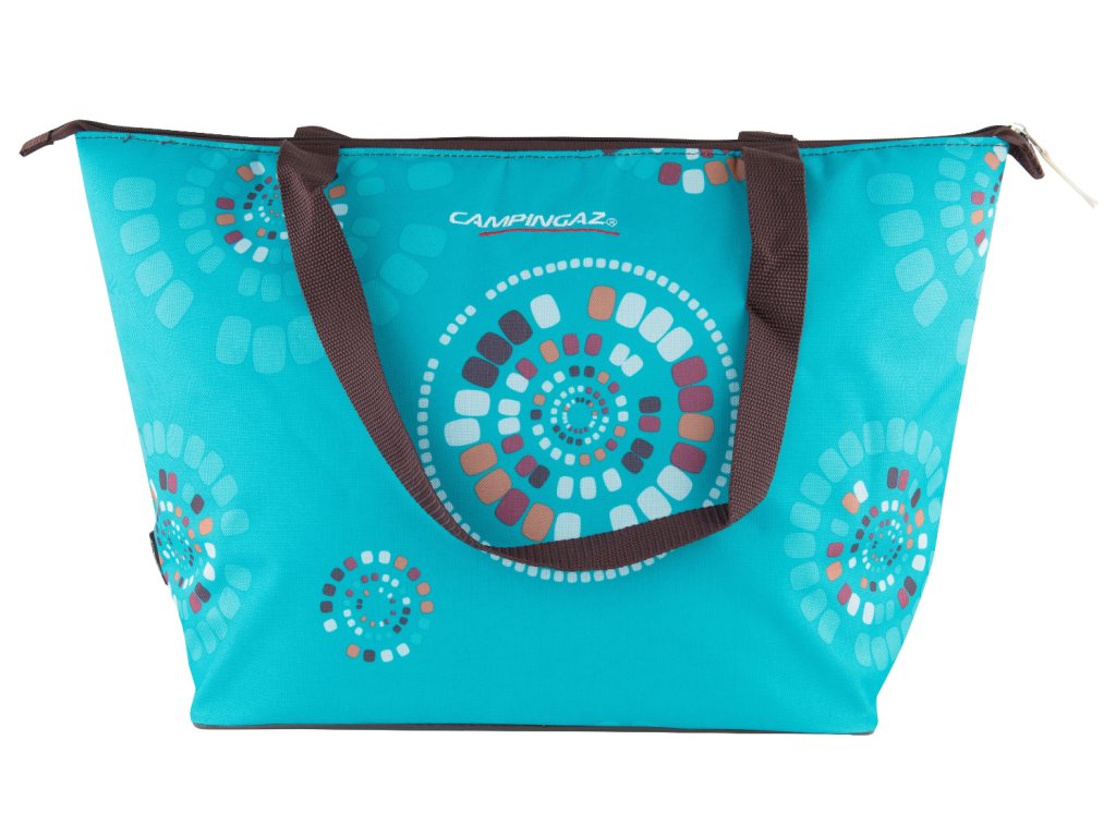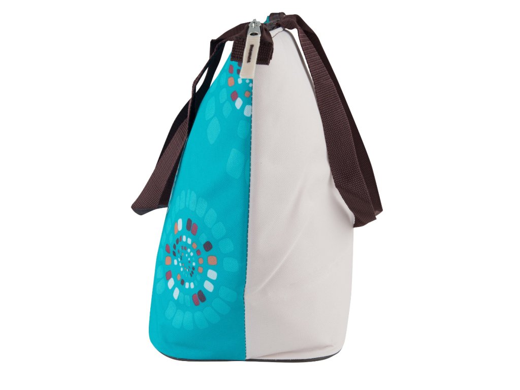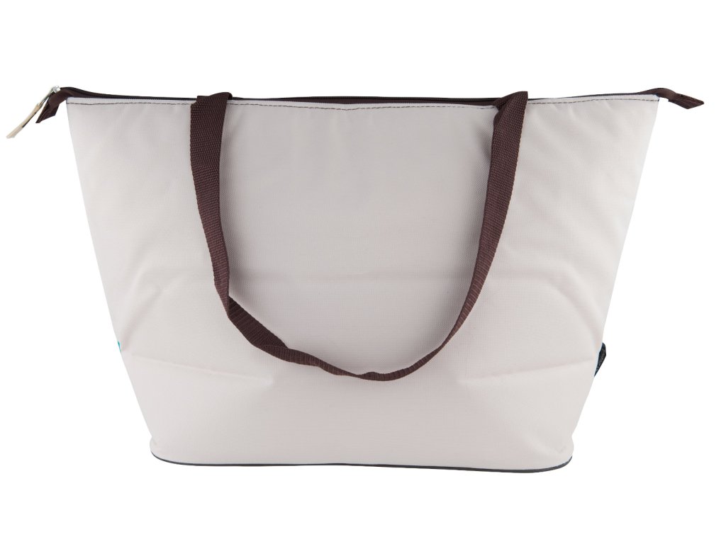 Dámská chladící taška. Pohodlné nošení – v ruce, přes rameno. Snadno se čistí, zavařené vnitřní švy (v případě poškození obalu uložených nápojů nebo potravin zabrání proniknutí do izolace). Skladná.