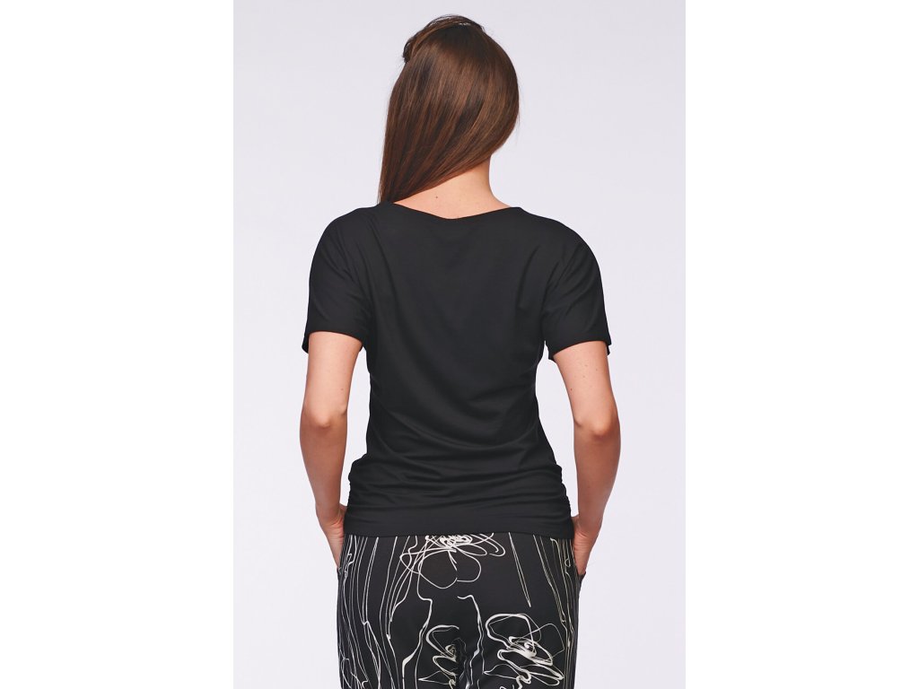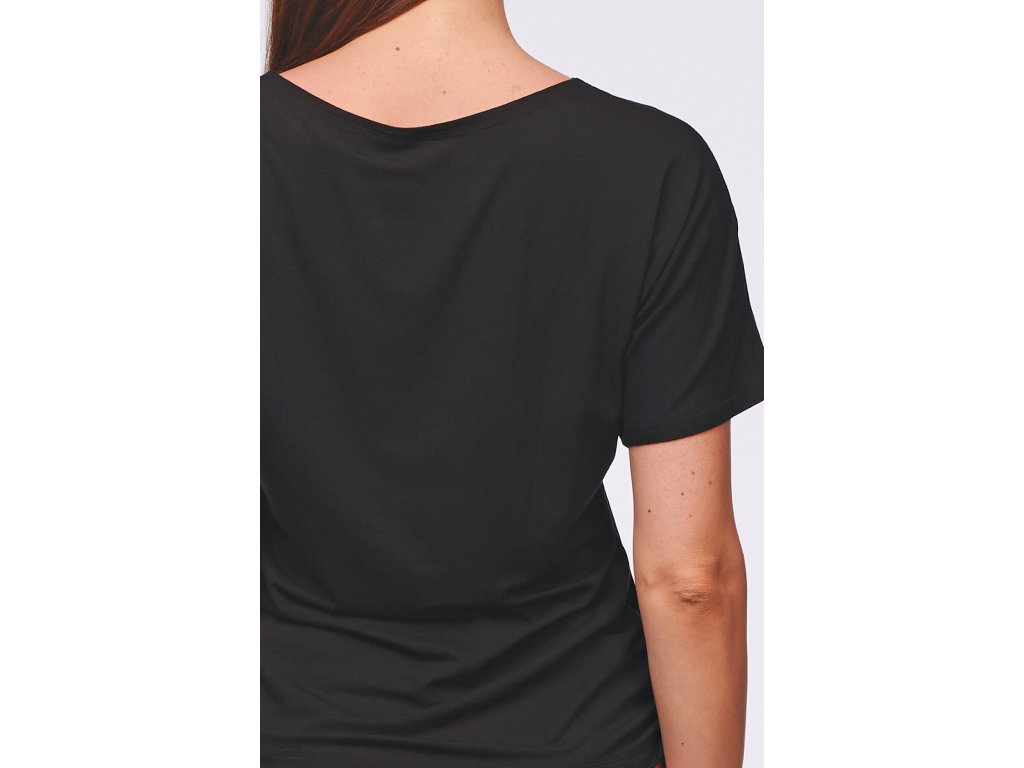 Dámská kimonová halenka s vetším lodičkovým výstřihem. Na bocích je zřasená gumičkou. Je vyrobená z příjemného materiálu z bambusu, který je prodyšný, příjemný na omak, velmi dobře se nosí a udržuje.