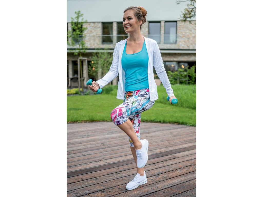Upnuté sportovní dámské 3/4 kalhoty vyrobené z příjemného elastického materiálu.