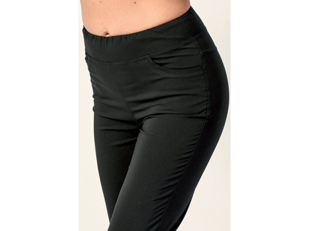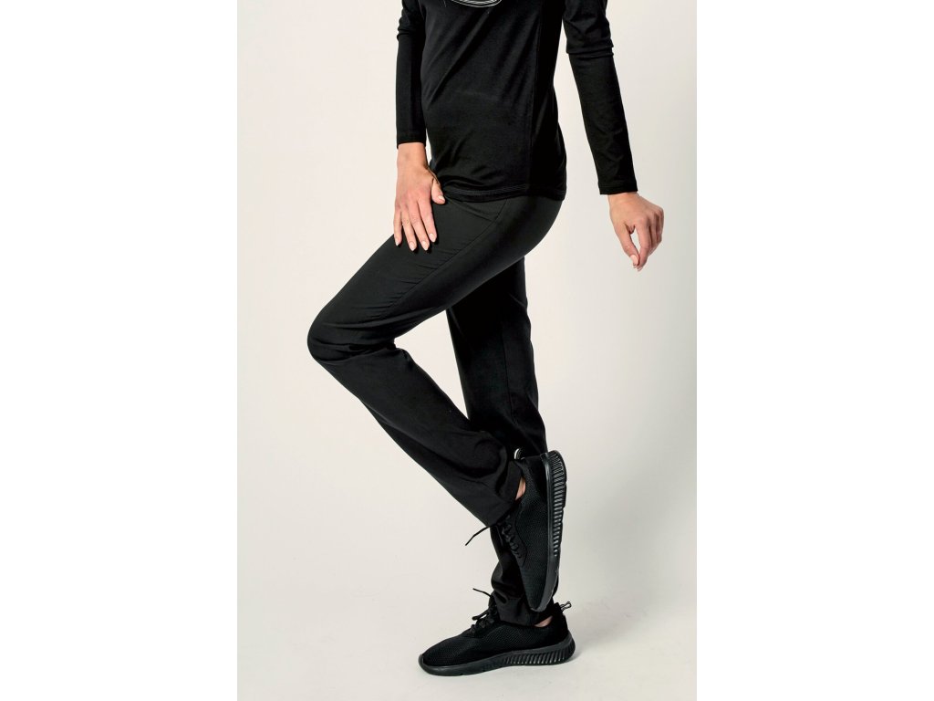 Dámské kalhoty s úzkými nohavicemi. Na předním díle mají kapsy a na zadním díle sedlo. Jsou vyrobeny z funkčního vodoodpudivého materiálu, který je prodyšný, nemačká se a zajišťuje optimální volnost pohybu.