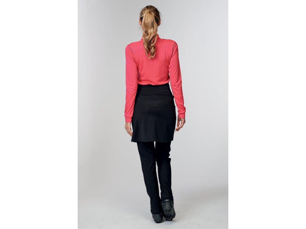 Funkční dámské kalhoty bez kapes. Přední díl, po předělení pod koleny, je ze softshellu, který je tvořený 3 vrstvami, kdy je vnější látka neprodyšně spojena s vnitřní, za pomocí funkční membrány Dintex. Tato membrána činí materiál větru vzdorným, voděodolným, ale zároveň prodyšným. Je také mechanicky elastická, čímž zajišťuje vysoké pohodlí a neomezený pohyb. Zadní díl a spodek předního dílu je z rychleschnoucího termomateriálu Vuelta s velmi nízkou nasáklivostí. Materiál je odolný a snadno udržovatelný, zvláštní způsob pletení mu dodává vysokou elasticitu v obou směrech. Vzhledem ke své vysoké odolnosti proti žmolkování a oděru, Vuelta zajišťuje dlouhodobé užívání. Svým charakterem je určen pro podzimní až zimní období roku. Kalhoty jsou ukončené protiskluzovou gumou.