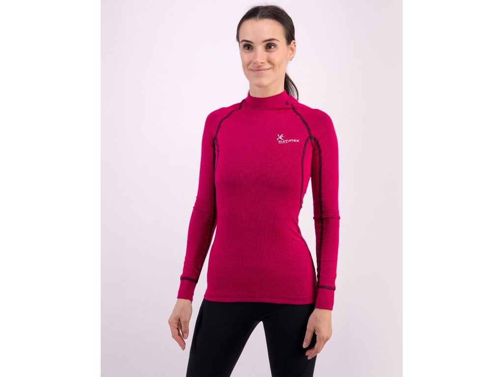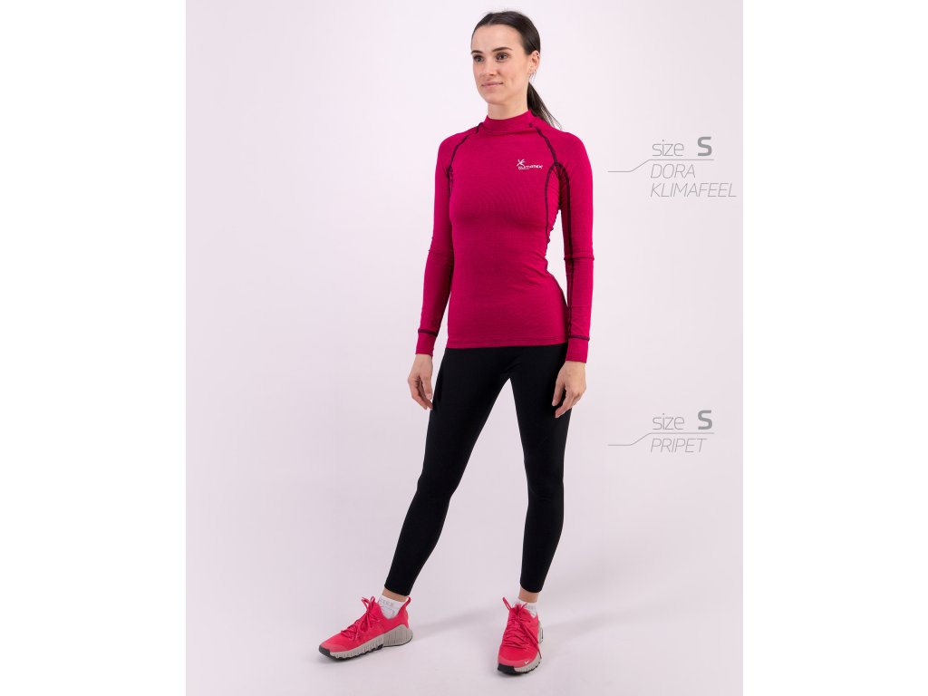 Dámské funkční triko Klimatex DORA s dlouhým rukávem, vyrobené z nealergického materiálu ANETA má prodloužená záda a ploché švy. Je vyrobené z integrované pleteniny polypropylenu a modalu s přídavkem elastanu. Modal pomáhá urychlovat odvod potu pomocí knotového efektu, zlepšuje omak a fyziologické vlastnosti. Speciální polypropylenové vlákno Prolen Siltex modifikované antibakteriálním aditivem na bázi biogenních iontů stříbra neškodí tělu ani životnímu prostředí.