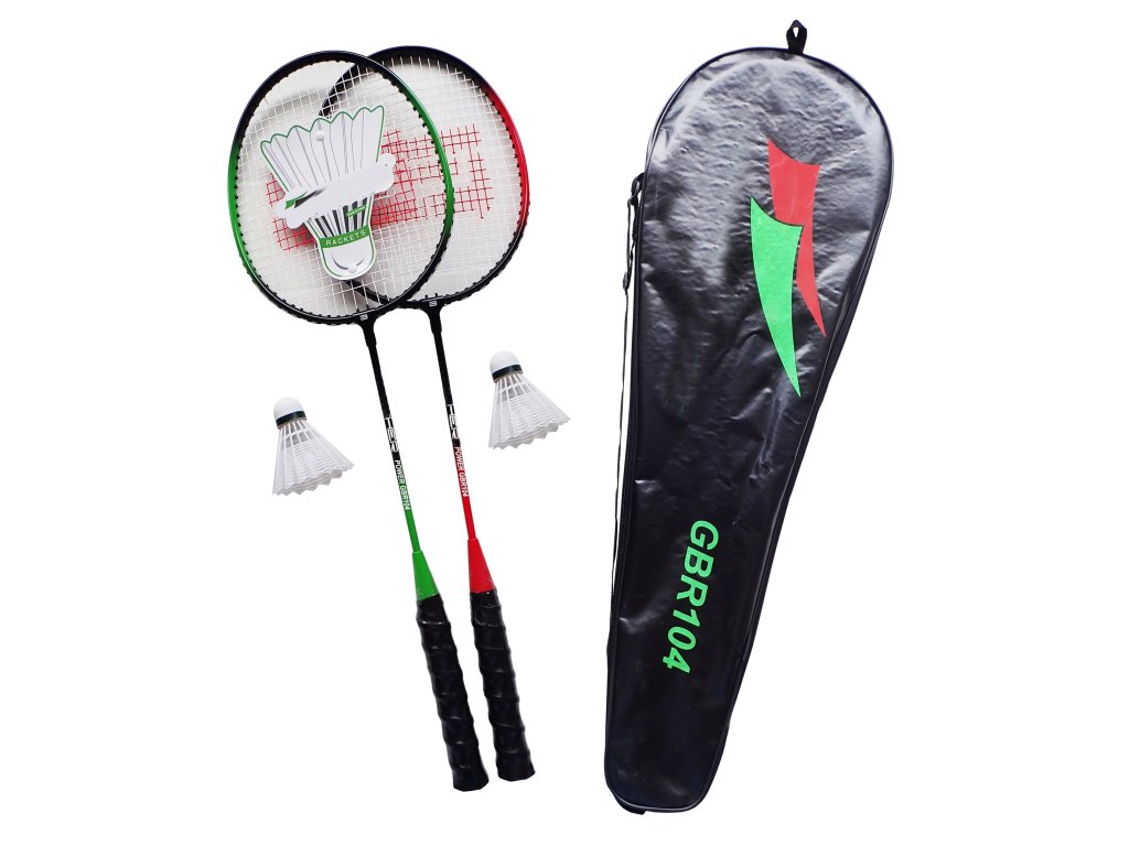 Tato badmintonová sada je ideální pro rekreační hráče, kteří hledají kvalitní a odolné vybavení. Sada obsahuje dvě kvalitní ocelové odlehčené rakety s pevným výpletem napnutým na tah 8 - 9 kg, což zajišťuje dobré herní vlastnosti. Rukojeti raket jsou opatřeny pevnou omotávkou, která se příjemně drží v rukách. Součástí balení jsou také dva košíčky na hru. Celá sada je uložena v praktické nylonové tašce s potiskem. Rakety jsou dostupné ve dvoubarevném provedení v červenočerné a zelenočerné barvě, jak je vidět na fotografii.