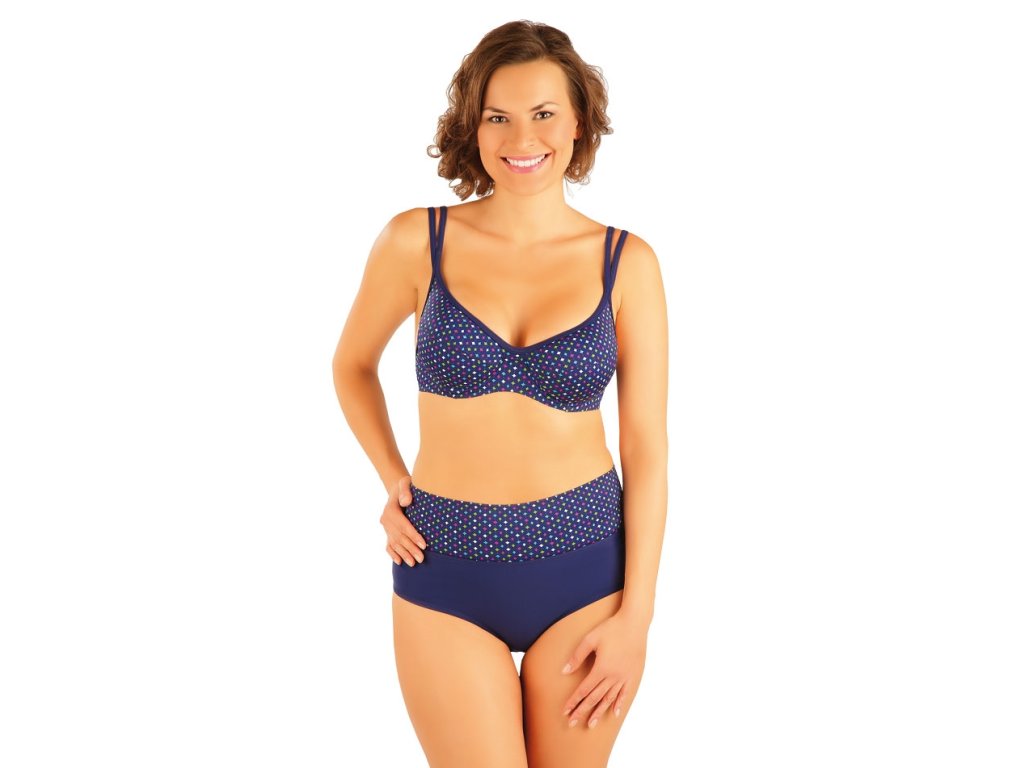 Plavková podprsenka s kosticemi.Zapínání na zádech.Nastavitelná ramínka.Materiál: 85% Polyamid + 15% Elastan/ Lycra.