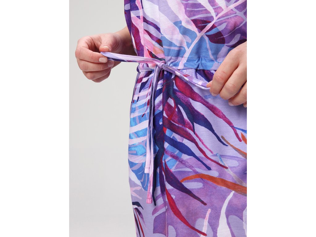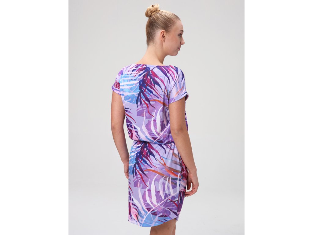 Šaty jsou ušity ve volnějším střihu s obloukovým výstřihem, v pase je lze stáhnout tkaničkou a tím i podkasat. Potká-li vás nečekaná letní přeháňka, oceníte rychleschnoucí materiál. Kromě dvou kapes zdobí šaty i originální potisk sublimační metodou, která je zárukou odolnosti a stálosti barev.