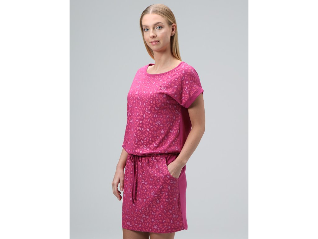 Postará se o to látka z bavlny a modalu, která dokonale spojuje to nejlepší z obou materiálů: šaty jsou prodyšné, příjemné na těle, zároveň rychle schnou, při praní nežmolkovatí a udržují si dlouhodobě původní barvy a tvar. Klasický střih je v pase doplněn stahováním na tkaničku a lichotí každému typu postavy. Ležérní styl podtrhují dvě kapsy na bocích, vpředu šaty oživuje potisk s motivem lístků.