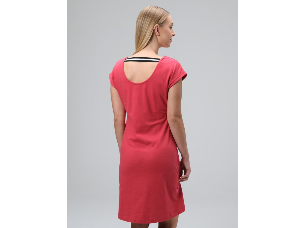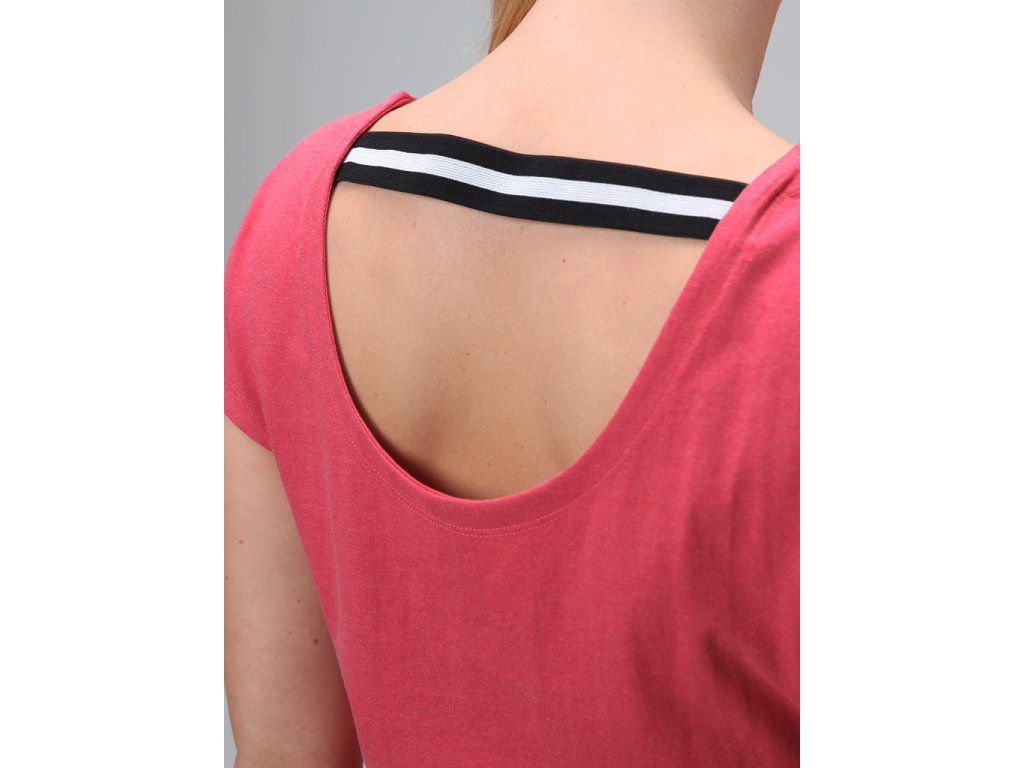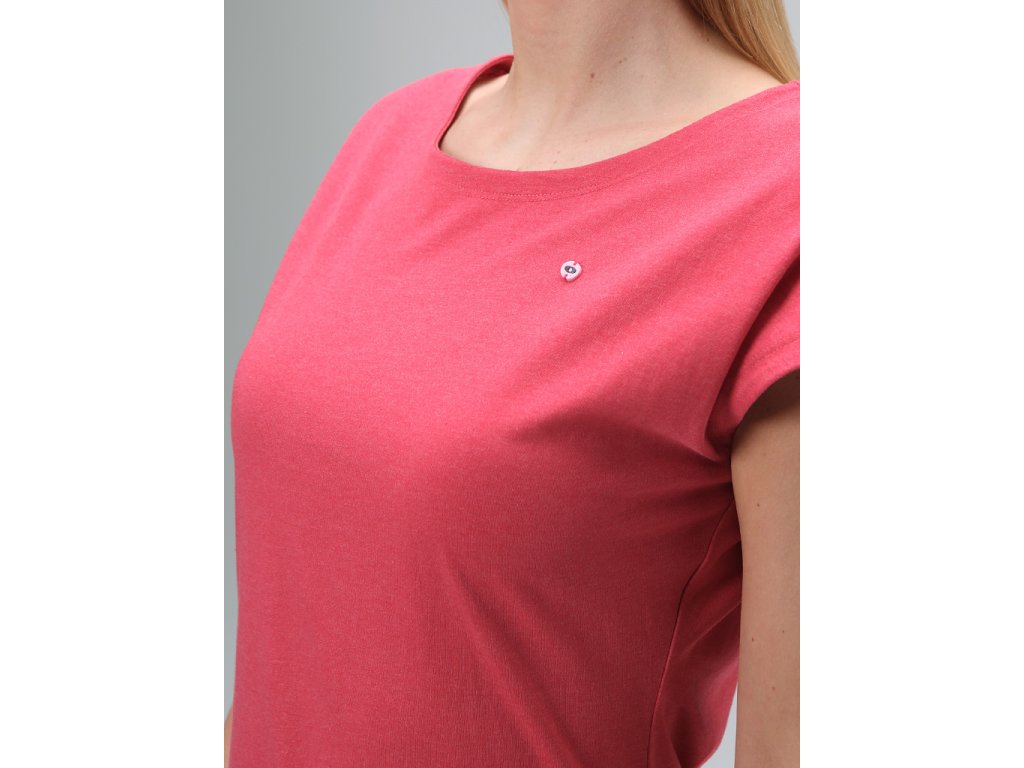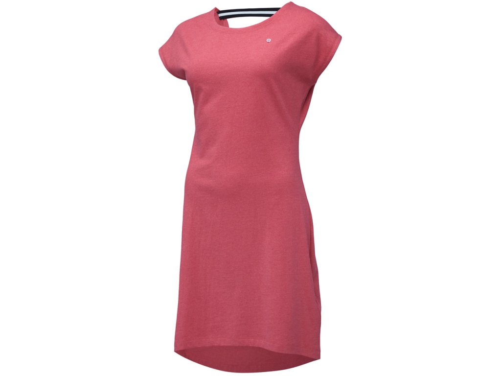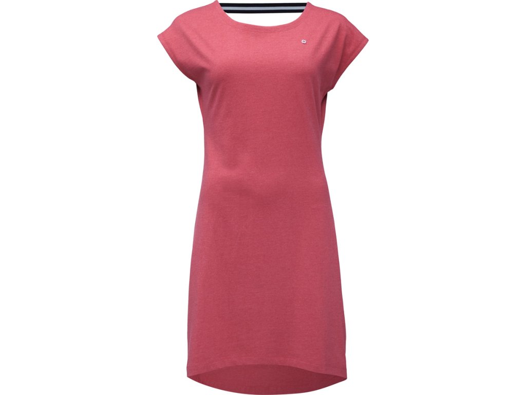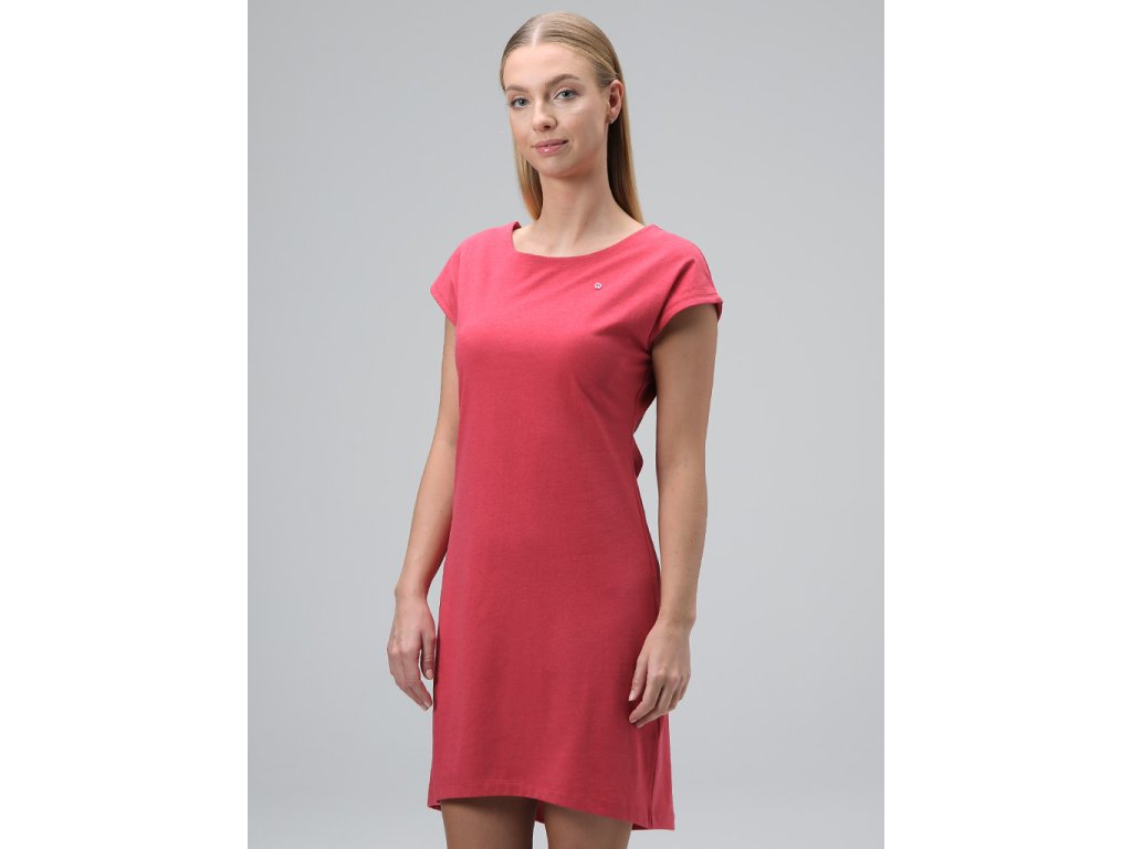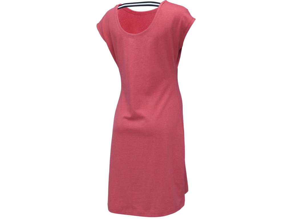 Šaty vynikají pro bavlnu typickým pohodlím a prodyšností, polyesterová složka jim zase dodává na větší praktičnosti, ať už co do nižší mačkavosti nebo rychlejšího schnutí. Také si díky ní dlouhodobě drží tvar a živé barvy. Stylově jednodušší klasický střih s mírně prodlouženým zadním dílem je doplněn originálním prvkem v zadní části výstřihu. Jednobarevné provedení zpestřuje lehký melírovaný efekt.