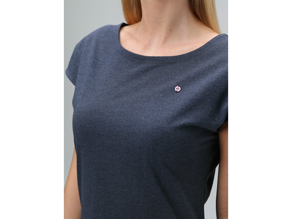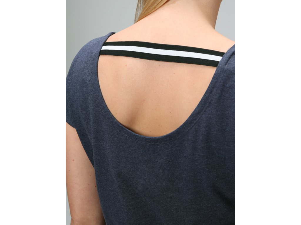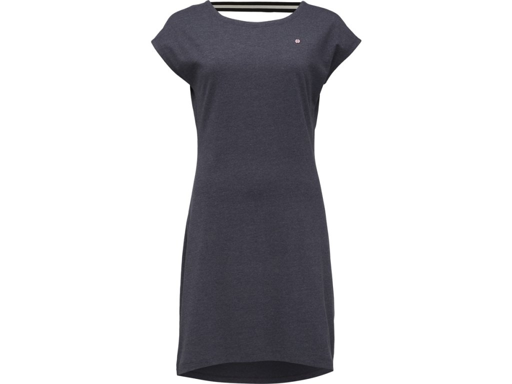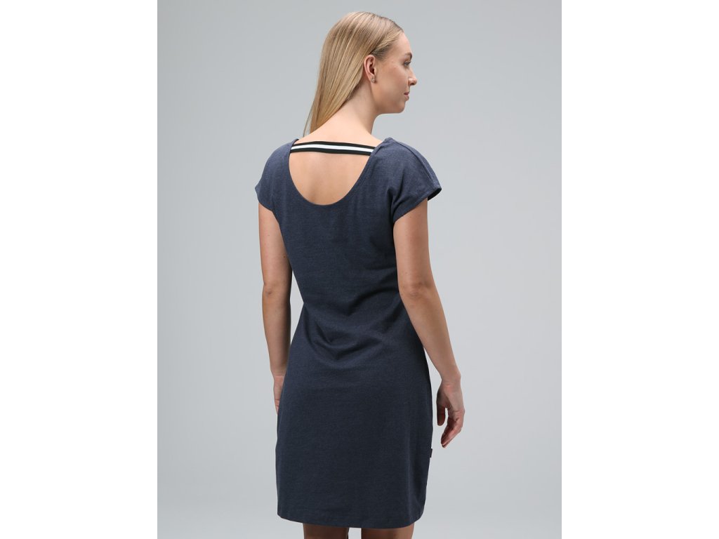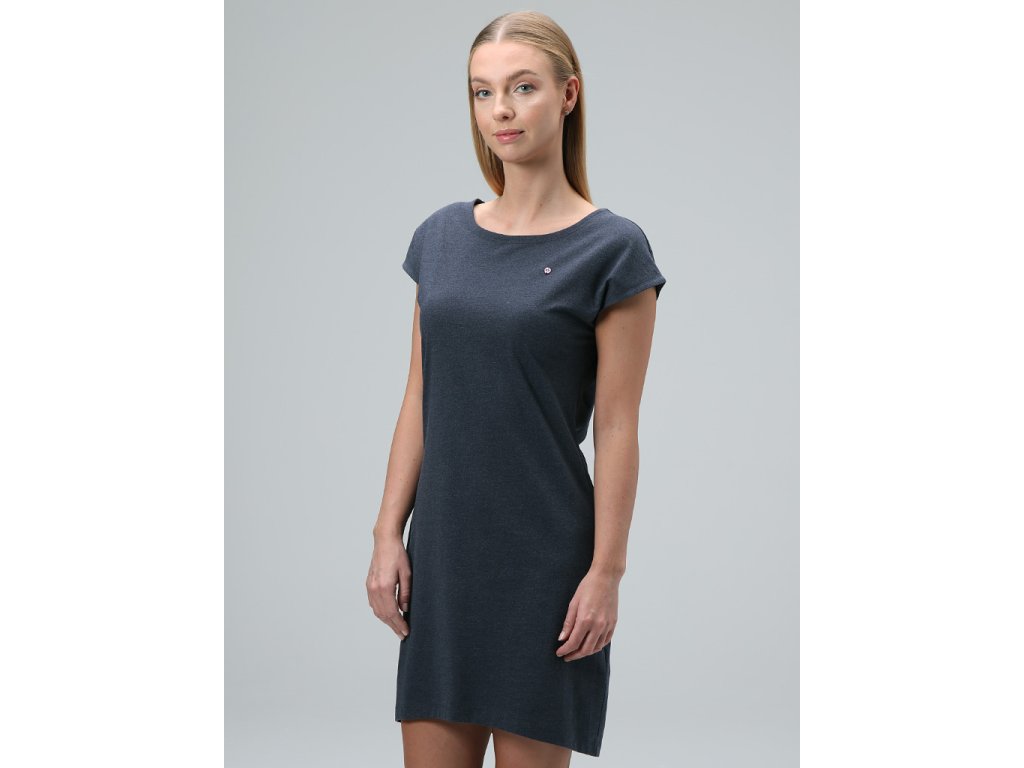 Šaty vynikají pro bavlnu typickým pohodlím a prodyšností, polyesterová složka jim zase dodává na větší praktičnosti, ať už co do nižší mačkavosti nebo rychlejšího schnutí. Také si díky ní dlouhodobě drží tvar a živé barvy. Stylově jednodušší klasický střih s mírně prodlouženým zadním dílem je doplněn originálním prvkem v zadní části výstřihu. Jednobarevné provedení zpestřuje lehký melírovaný efekt.
