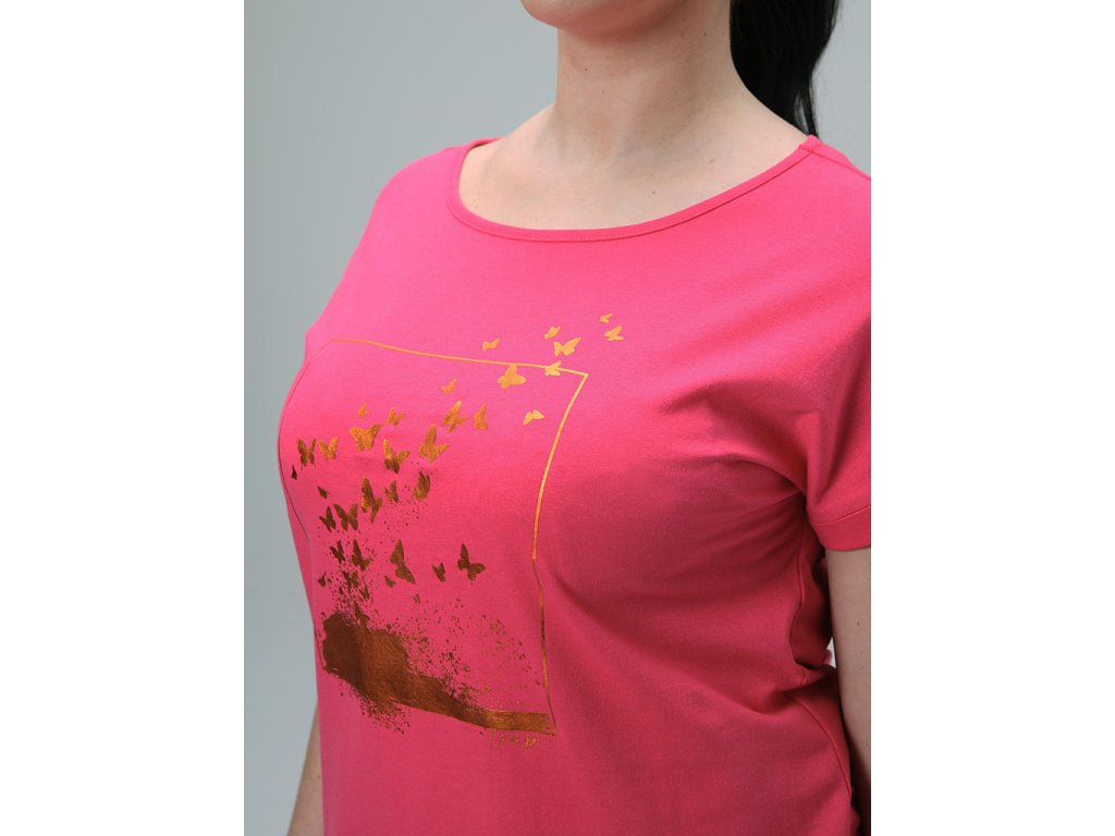Díky bavlně je velice příjemné na těle po celý den, komfort zvyšuje také volnější střih, který lichotí každé postavě. Triko má lodičkový výstřih a vpředu jej zdobí potisk.