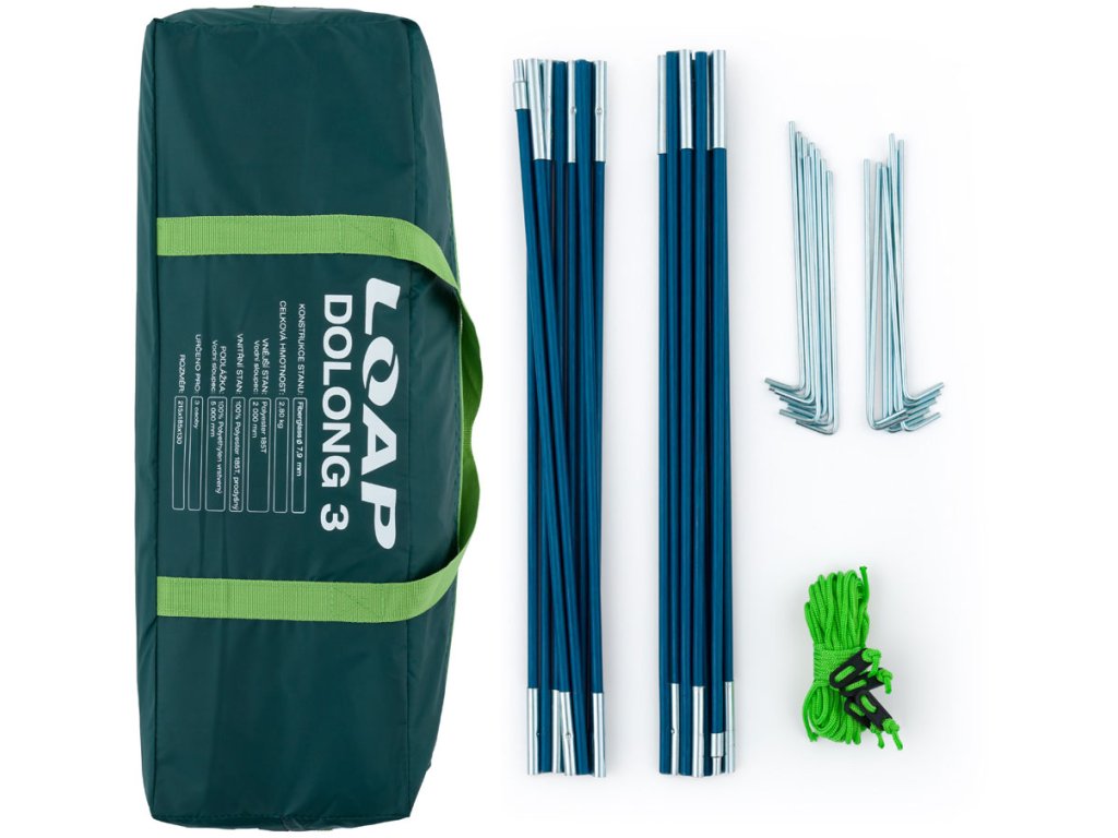 Loap DOLONG 3 je dvouplášťový stan pro 3 osoby, ideální volba pro pohodlné táboření. S polyuretanovým zátěrem Drytech a typem kopule poskytuje spolehlivou ochranu před nepřízní počasí. Jeho vnitřní konstrukce zajišťuje snadnou montáž a stabilní stavbu. S délkou rozložených prutů poskytuje dostatečný prostor uvnitř. Vnější stan vyrobený z polyesteru s vodním sloupcem 2 000 mm a prodyšný vnitřní stan z polyesteru zaručují komfortní spaní za každé situace. Stan má také podlážku z vrstveného polyethylenu s vodním sloupcem 5 000 mm a 7,9 mm sklolaminátové pruty, což zajišťuje jeho odolnost a lehkost.