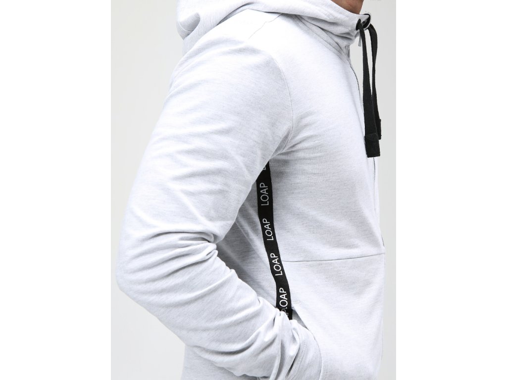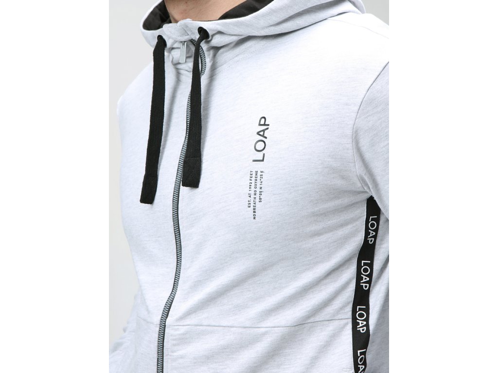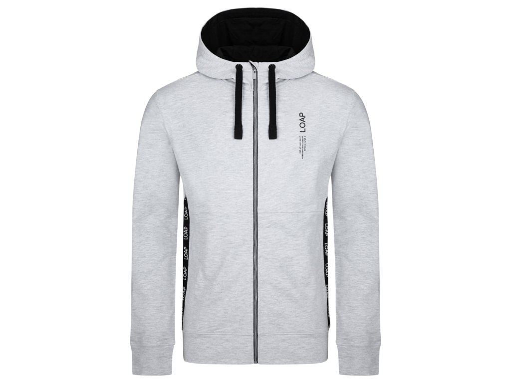 Mikina je vyrobena z bavlny doplněné o elastanovou složku. Příjemný pocit při nošení umocňuje podšívka z bavlny a viskózy. Mikina je klasického střihu, celorozepínací s kostěným zipem. Spodní lem i rukávy jsou bez stahování, kapuci je možné uzpůsobit pomocí plochých tkaniček. Po stranách má mikina dvě praktické kapsy. Jinak jednoduchý design je zpestřen jemným logem na hrudi a proužky s nápisem Loap po stranách mikiny.