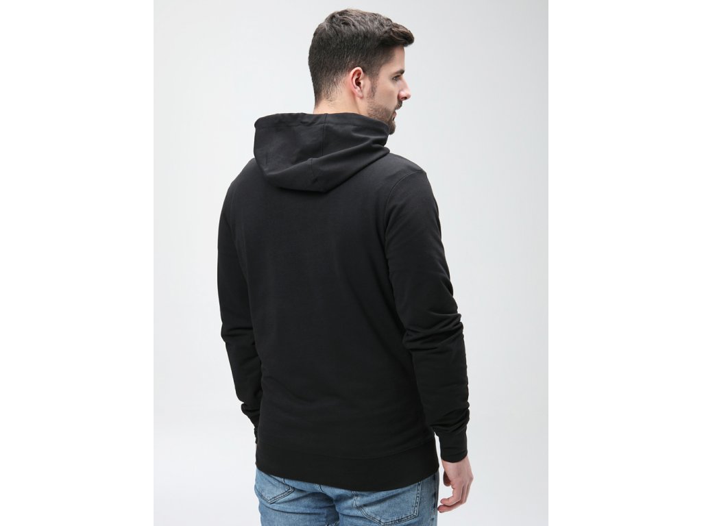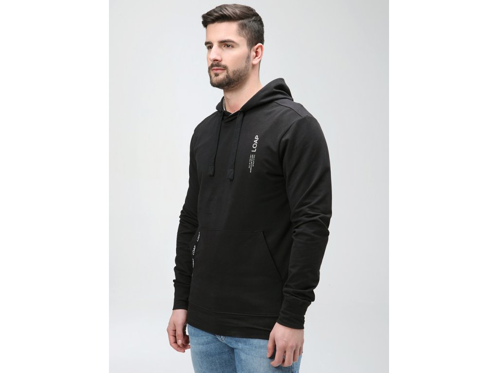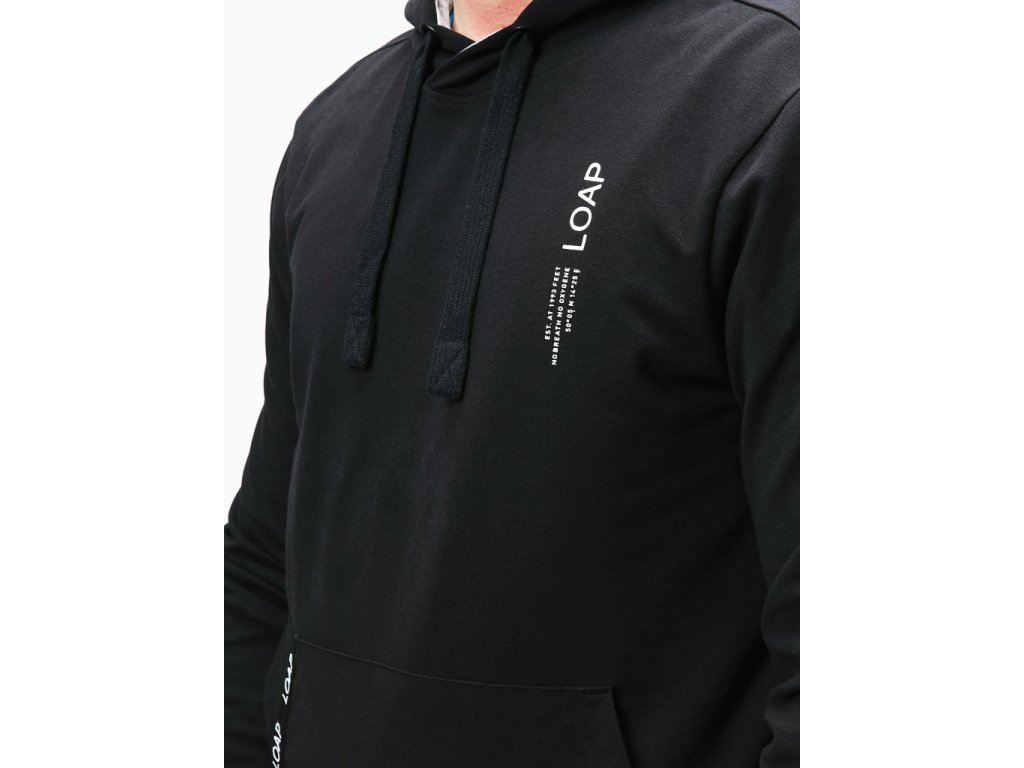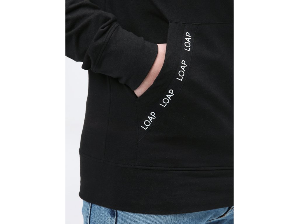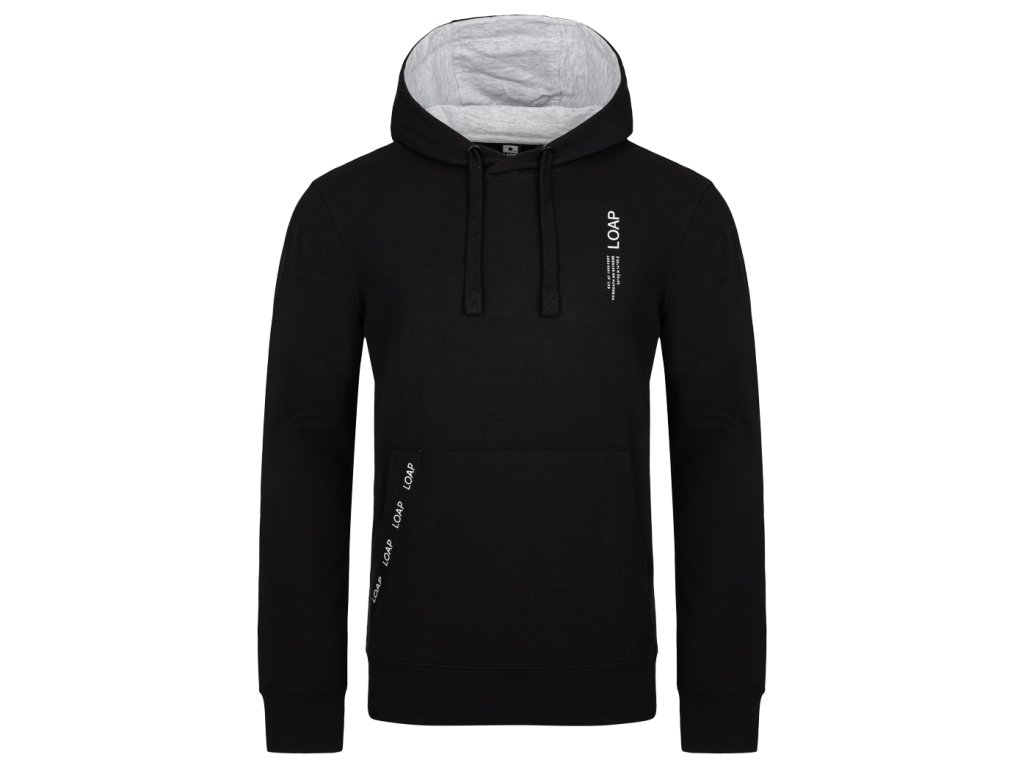 Hlavní složkou materiálu je bavlna doplněná o elastanovou složku. Mikina je tak příjemná na těle, lehce pruží, zároveň se méně mačká. Pocit pohodlí ještě více umocňuje podšívka z bavlny a viskózy. Střih mikiny je klasický. Kapuce je vybavena tkanými plochými tkaničkami, narozdíl od spodního okraje a rukávů ji tak lze stáhnout. V přední části má mikina dvě vnější kapsy spojené do “klokanky”. Slušivý vzhled podtrhuje jemné logo na hrudi a páska s nápisy Loap našitá na kapse.