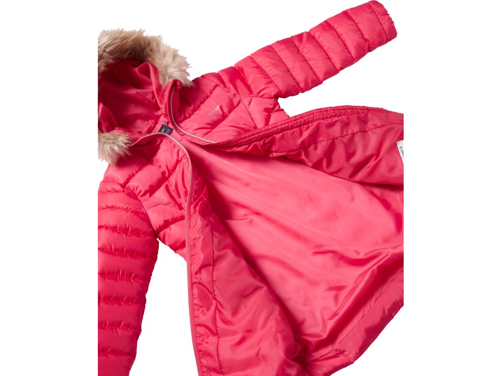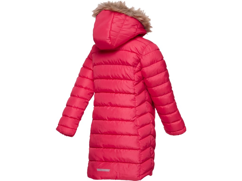 Na cestách do školy i na výletě spolehlivě zahřeje díky zateplení z dutých vláken POLYTHERM. Tato izolační výplň navíc vyniká tvarovou pamětí a spolu s hebkou podšívkou zaručí, že se v kabátě bude každá cítit královsky. Svršek z materiálu STORMEX a voděodolný zátěr DryTech ochrání před nevlídným počasím i koulovačkou. Při ní přijde vhod také kapuce se stylovou kožešinkou. Zapínání na spirálový zip s krytím u brady usnadňuje oblékání a brání bolístkám v podobě skřípnutí kůže. Bezpečný pohyb za šera podporují reflexní prvky a prošívaný vzhled doplňují dvě kapsy na bocích.