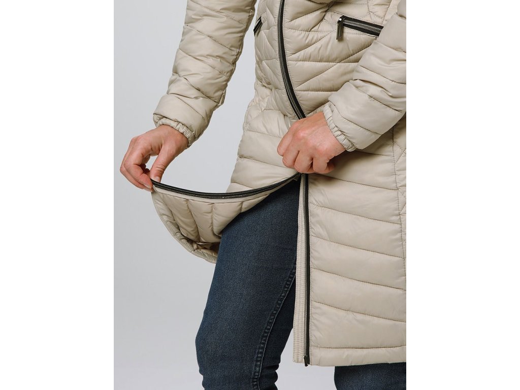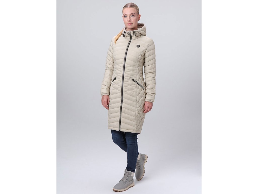 Dámský kabát Loap JEMINA skvělou volbou do města i na pohodovou procházku. Spolehlivě zahřeje a odolá nečekané přeháňce. Tepelný komfort zaručuje izolační výplň z dutých vláken POLYTHERM, která navíc vyniká tvarovou pamětí, kabát se vám tak krásně přizpůsobí. K teplu i pohodlí přispívá také prodloužená délka a měkká podšívka. Pro sychravé dny je svršek vybaven zpevňujícím materiálem STORMEX a voděodolným zátěrem DryTech, vhod přijde také pevná nastavitelná kapuce. Kabát je celorozepínací se spodním okrajem bez stahování, rukávy disponují vnitřním elastickým stahováním. Elegantní moderní vzhled podtrhuje zip s metalickým efektem a dvě kapsy na bocích.
