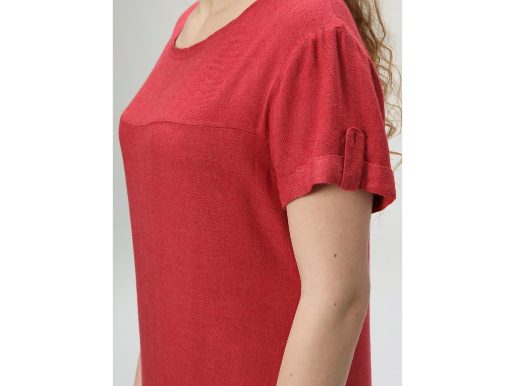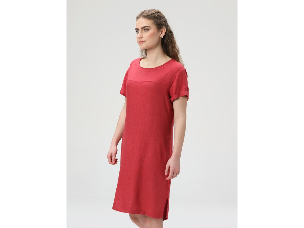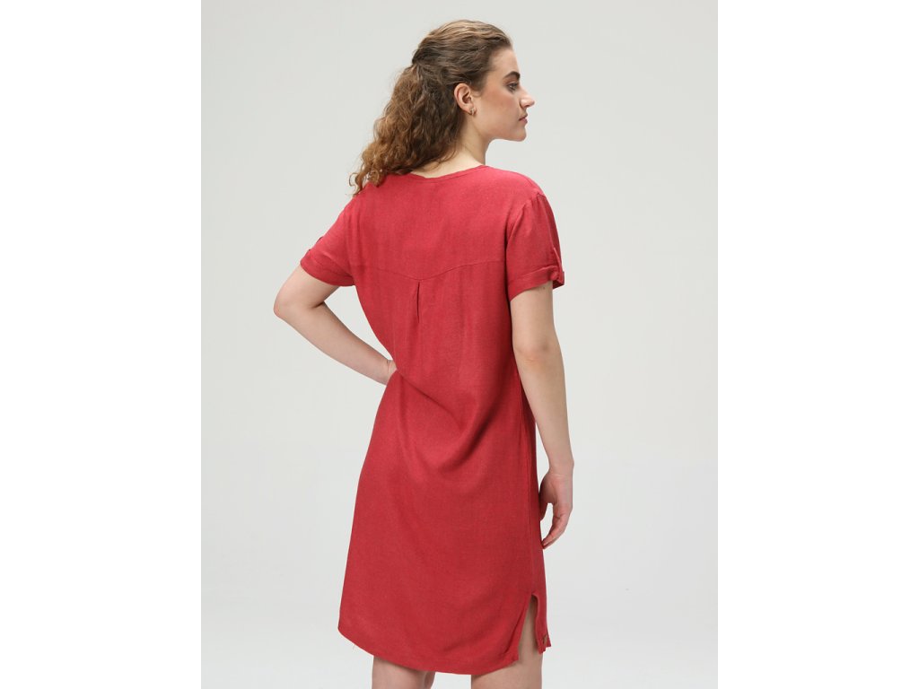 Materiál je ze 100% viskózy, díky tomu jsou šaty velice příjemné na nošení, prodyšné a lehce chladivé. Pro letní dny ideální vlastnosti! Šaty mají střední délku a klasický střih s lodičkovým výstřihem. Spodní část zdobí rozparek a nášivka.