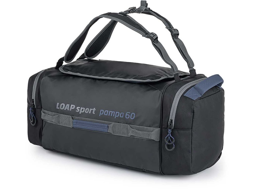 Sportovní taška Loap PAMPA s objemem 58 litrů a nosností 15 kg je vyrobena z odolného Tarpaulin PVC. Dá se nosit přes rameno, ale i jako batoh na zádech. Má čtyři vnější kapsy (vč. kapsy s vložkou na boty) a uvnitř další tři kapsy. Hlavní kapsa je na zip a má praktické krytí, aby bylo nošení tašky na zádech pohodlné. Prsní spojka a popruhy jsou nastavitelné, aby taška dobře přilehla k tělu. Na boku je navíc držadlo pro přenášení v ruce.