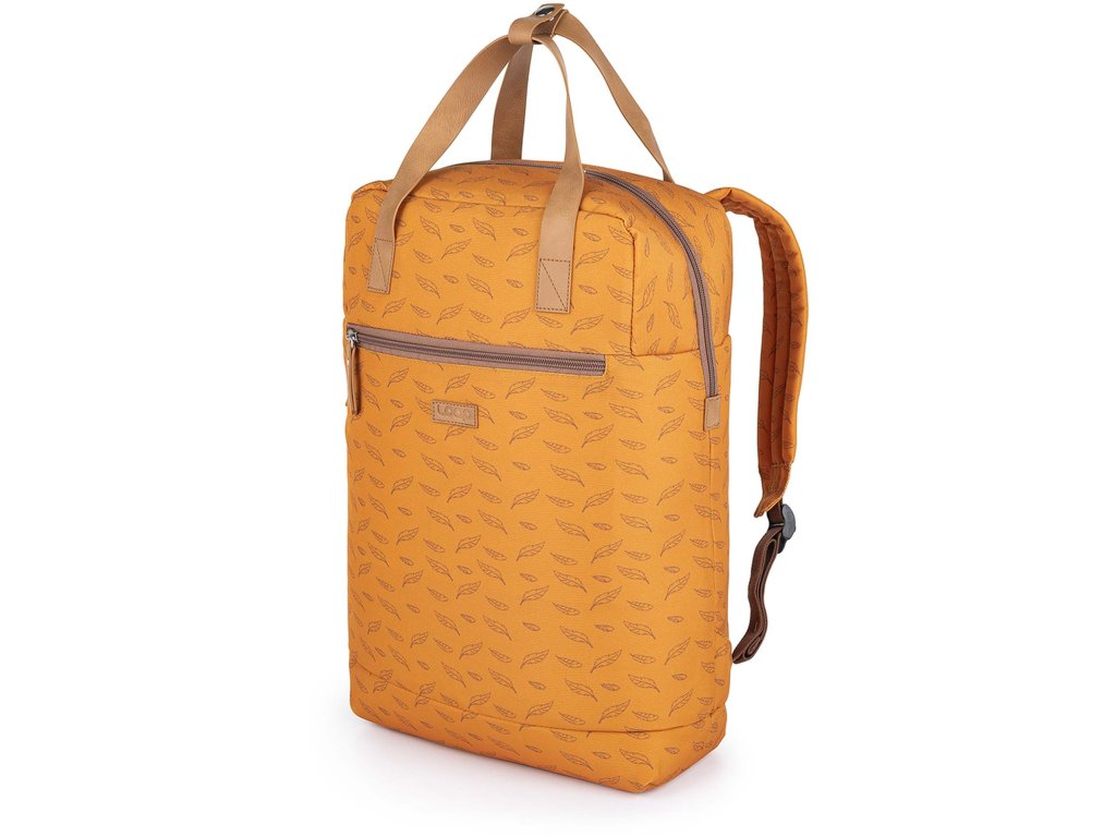 Elegantní dámský batoh do města Loap REINA s vrchním plněním, objemem 15 litrů a nosností 7 kilogramů. Má polstrovaná záda, dno i kapsu na notebook až do velikosti 15". Hlavní komora je na zip, vpředu i na straně zad je další kapsa na zip. Uvnitř jsou celkem dvě kapsy (polstrovaná kapsa na notebook, a ještě jedna kapsa na zip). Kromě klasických nastavitelných ramenních popruhů má delší držadla na přenášení v ruce, která se dají spojit přezkou. Batoh s decentním potiskem vznášejících se lístků je vyrobený ze 100% polyesteru. Díky tomu je lehký, nenasává vodu, skvěle schne, odolává skvrnám a snadno se udržuje.
