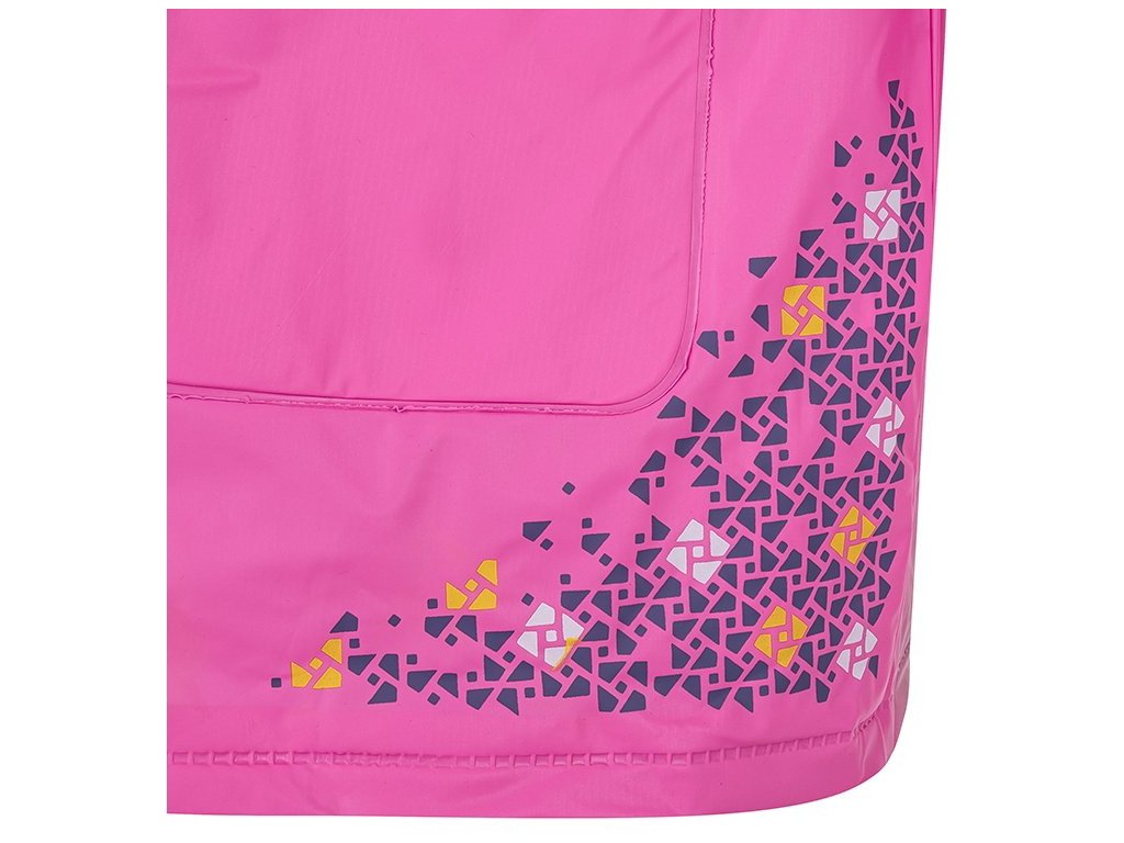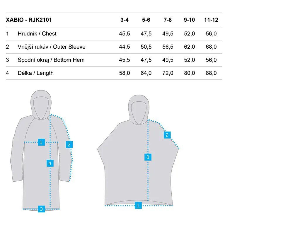 Dětská nepromokavá pláštěnka Loap Xabio je vyrobena z rychleschnoucího PVC materiálu. Zapínání je řešeno pomocí druků a kapuce je opatřena elastickým okrajem k dispozici jsou dvě kapsy rovněž se zapínáním na druky. Pláštěnku při spodním okraji zdobí geometrický potisk, který stejně tak jako potisk loga Loap disponuje reflexním provedením.