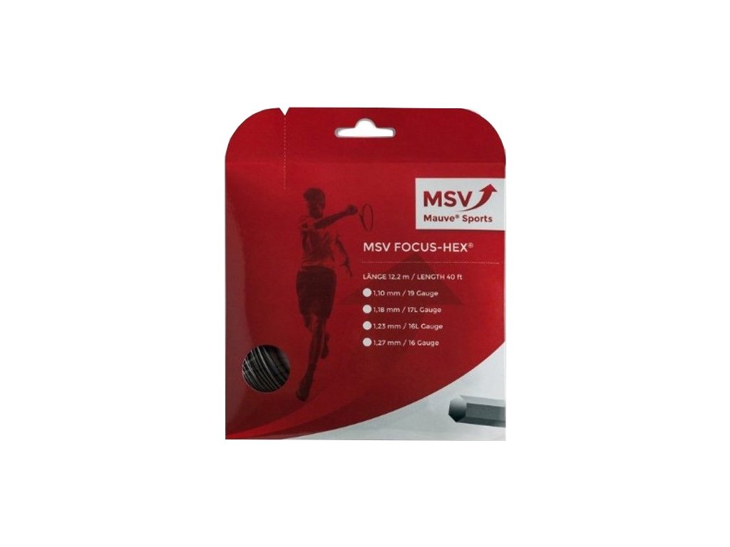 MSV Focus Hex má jedinečný šestihranný profil. Tento inovativní design není jen estetický - zlepšuje lepší rotaci a zároveň nabízí maximální kontrolu, takže je ideální pro silové hráče. Tato struna v elegantní černé barvě dodá vaší hře styl.