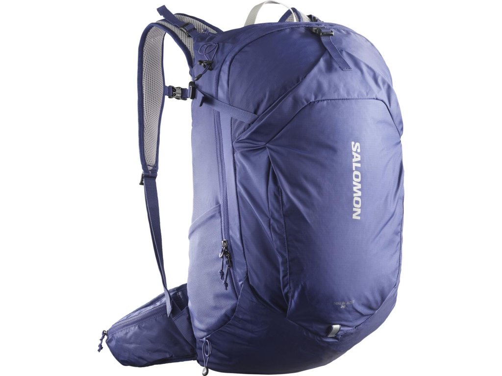 Batoh Salomon Trailblazer 30 je velmi lehký, komfortní a skvěle zvládne dlouhé túry. Batoh disponuje technologiemi, které jsou používané při výrobě běžeckých i turistických batohů. Ovšem v této verzi s objemem 30 litrů se jedná spíše o turistický, volnočasový batoh, než-li běžecký. Každopádně má skvěle prodyšná záda, dobře padnoucí popruhy, při výrobě byly použity kvalitní materiály, a tak batoh skutečně perfektně sedí. Batoh TRAILBLAZER 30 má 8 různých kapes, které jsou různě situované. V horní části batohu si můžete lehce a snadno uzpůsobit utažení. Je zde možnost uchycení trekových holí. Batoh je zároveň kompatibilní na Salomon lahvičky Soft Flask 500 ml a stejně tak je i vhodný pro nošení 17" notebooku.