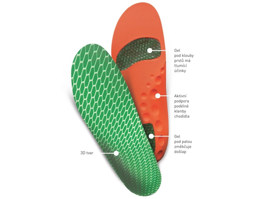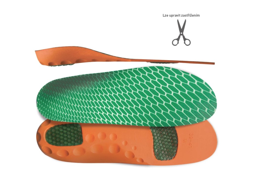Ortopedicky tvarované sportovní vložky s měkčí konstrukcí a mírnou podporou podélné klenby. Zlepšují stabilitu chodidel a působí proti únavě a tvorbě otlaků při zvýšené a dlouhodobé zátěži.