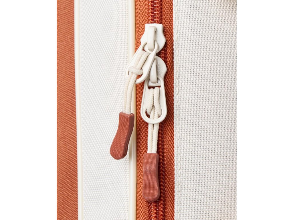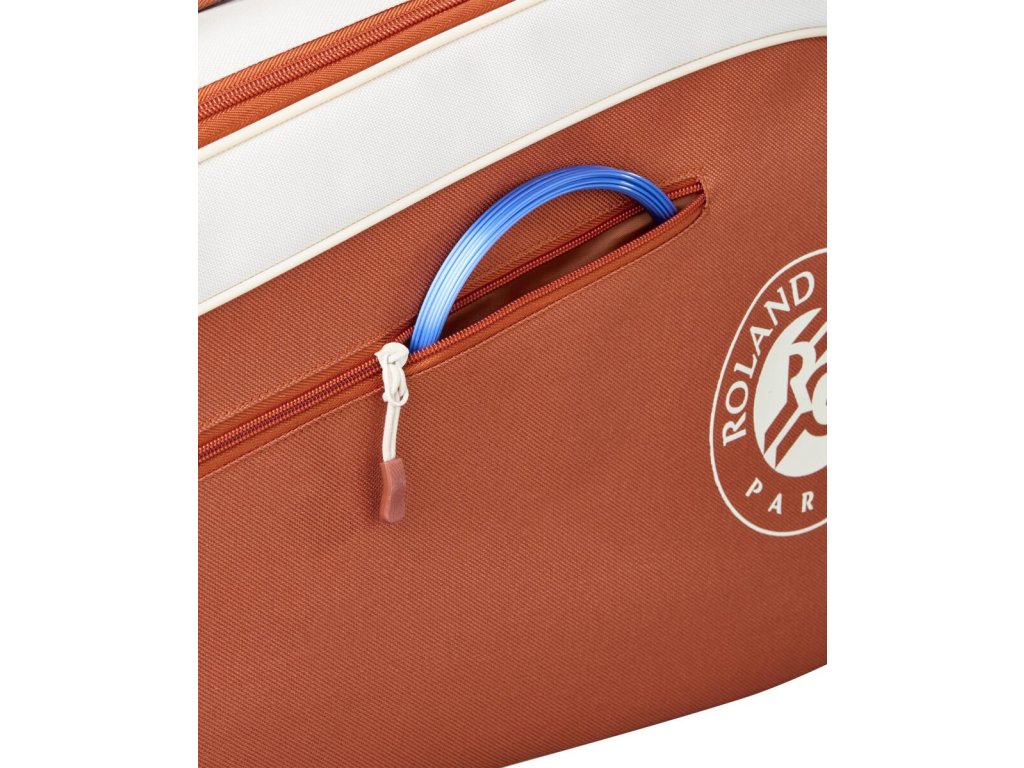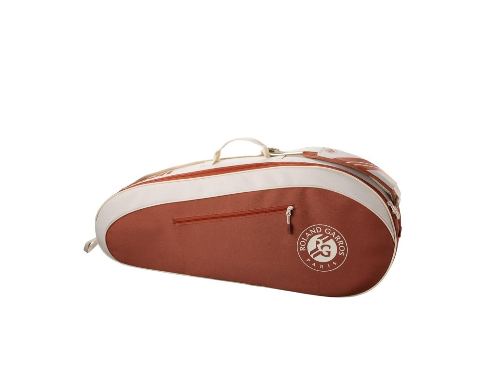 Taška na rakety Wilson Team 3PK Roland Garros 2025 Cream/Clay je bag na přenášení až 3 raket a další sportovní výbavy. Je ideální pro uschování jedné rakety a oblečení. Pokud na kurty cestuješ například autem nebo na kole už převlečený, využiješ prostor pro náhradní rakety.
